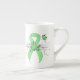 Light green ribbon with a light green butterfly, circles, and swirls. The light green ribbon is associated with Human Papilloma Virus Awareness in April, Sexually Transmitted Diseases in April, STD Awareness in April, Celiac Disease Awareness in May, and Chronic Pelvic Pain Awareness.