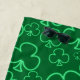 A random pattern of shamrocks outlined in light-green against a darker green background. A towel for anyone Irish or Irish at heart.
