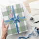 This classic light green and white buffalo plaid gift wrap is a neutral design that is perfect year round.