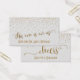 In a swirling, modern script font, the words "this one is on us!" appear on the front of this drink ticket. The phrase has been embellished with a faux glitter gold effect. "Good for One Adult Beverage" is the editable field in a coordinating art deco font at the bottom. On the other side is "Cheers" and a template place holder for your names. Festive gold glitter-embellished confetti seems to fall from above on both sides. You may change the background to any colour or hue you like.
