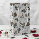 Hand-drawn in black ink, this gift bag features a beautiful pattern of skulls, roses and spiderwebs in cream and blush tones, all against an elegant light grey background.