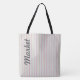 Designer pinstripe light grey market bag. The text can be personalised or is removable. The light grey background can be changed to your favourite colour to make it your very own. Beautiful cloth gift bag.