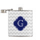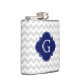 Light Grey White Chevron Navy Quatrefoil Monogram Hip Flask