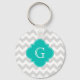 Light Grey White Chevron Teal Quatrefoil Monogram Key Ring