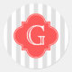 Light Grey and White Medium Stripes Pattern, Coral Red Quatrefoil Monogram Label
