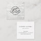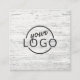 Square, professional business cards or personal profile cards with a with a printed, light grey wood grain background on the front and a logo template for uploading your custom logo. On the back are template fields for name, title/company name/speciality and contact information. A minimal and classy design.