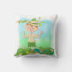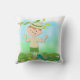 A light haired boy on a safari with a blue sky background talks to the snakes, turtle, and iguana! This cute safari theme pillow is great for kids who love nature hikes and the great outdoors!