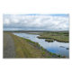 A compelling landscape shot showcasing the quiet majesty of a reservoir. The scene is framed by a rustic railing, leading the eye across a winding stream feeding into the larger body of water. Under a captivating cloudy sky, distant power pylons add a unique industrial-meets-nature aesthetic. This image evokes feelings of contemplation and the subtle power of both natural and man-made structures coexisting. Ideal for anyone seeking a distinctive, thought-provoking natural scene with a touch of modern presence. This image can be edited and transferred to multiple products of your choosing.
