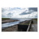A compelling landscape shot showcasing the quiet majesty of a reservoir. The scene is framed by a rustic railing, leading the eye across a winding stream feeding into the larger body of water. Under a captivating cloudy sky, distant power pylons add a unique industrial-meets-nature aesthetic. This image evokes feelings of contemplation and the subtle power of both natural and man-made structures coexisting. Ideal for anyone seeking a distinctive, thought-provoking natural scene with a touch of modern presence. This image can be edited and transferred to multiple products of your choosing.