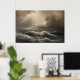 Seascape with powerful waves and sunbeams breaking through dramatic clouds. Sepia tones create a melancholic and inspiring atmosphere. Perfect for decoration, posters and wall art. A work that conveys strength, hope and the untamed beauty of nature in its wildest form.
