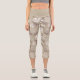 Light Latte Brown Botanical Monster Leaves Pattern Capri Leggings