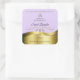 The design features a noble shimmery wavy gold decoration with soft glitter stars and a light lilac background.