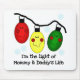 Three Christmas tree bulbs with eyes and a smile in red, green, and yellow and text that reads "I'm the light of Mummy and Daddy's Life" on holiday tote bags, T-shirts, and other items for kids!