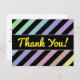 This postcard design features a pattern of stripes coloured various light pastel colours, with black stripes in between them. It also features the message "Thank You!" on the front in yellow script-like text, along with a personalised message of gratitude on the back.