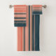 Light peach, coral, and orange striped pattern bath towel set