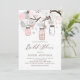Invite guests to your event with this customisable bridal shower invitation. It features whimsical light pink and grey mason jars, heartstrings, and flowers. Personalise this mason jar bridal shower invitation by adding your details. This custom bridal shower invitation is perfect for spring and winter showers. It is available in other colours and cardstock.
