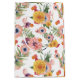 Light pink, yellow and purple flowers pattern and green leafs on white background. Customisable gift bag template