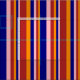 This design features a pattern of stripes having colours like light pink, blue, dark orange, and red.