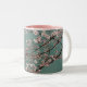 Light pink cherry blossoms on turquois background Two-Tone coffee mug
