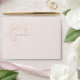 These modern minimalist light pink wedding envelopes feature delicate imitation gold floral elements and a contemporarty set of fonts in jet black. Flower detail is repeated on the inside flap. This design is contemporary and chic. Perfect for the stylish and elegant couple.