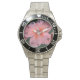 light pink common garden flower. nature floral photography. Classic stainless style watch.