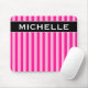 This mouse pad design features a pattern of alternating light pink and deep pink stripes. It also features a personalised name.