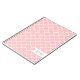 An elegant notebook with a pretty light blush pink and white geometric quatrefoil pattern, personalised with the name or text of your choice in a trendy font.