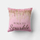 Light Pink & Gold Dripping Glitter Born To Sparkle Cushion