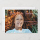Whether including in addition to a graduation invitation or notifying friends and family of an upcoming graduation, this full photo graduation announcement lists the student's name at the top. The high school and graduating class info is on the side. The back of the card is blank,