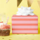 This wrapping paper design features stripes colored light pink and red. Wrapping paper like this might be fun to use when preparing gifts or presents being given to celebrate a birthday, a wedding, an anniversary, or some other event.