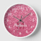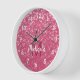 Monogram wall clock Personalise with your custom name. Beautiful girly glamourous soft light pinkish purplish red shiny glitters sparkles trendy modern colour. Photo of magenta sparkles glitter! Colour of the year in faux sparkles!