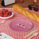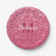 Light pink rose faux sparkles glitter Monogram Paper Plate