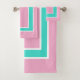 Light Pink Turquoise Block Pattern Bath Towel Set