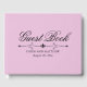 Very chic and sophisticated light pink wedding guest book with elegant black text. Guest Book is written in a large and fancy font. A classic fleur-de-lis text divider adds to the sophistication. The bride and groom names are below. It is easy to customise the text to personalise your experience.