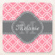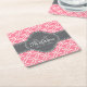 Light Pink Wht Moroccan Pattern Dark Grey Monogram Square Paper Coaster