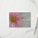 A fun and vibrant wedding rsvp featuring a photo of a light purple daisy peeking from left side over a background of barnwood. Opposite side features white background. Personalise with details of your occasion.