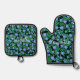 Light Purple Floral Flowers And Green Leaf Plants Oven Mitt & Pot Holder Set
