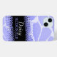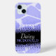 Bright teen style animal patterned case in black and purple hues. Personalise this item with your full name. This example currently reads: Daisy Mcdonald. This original pattern by Sarah Trett, is based on the patterning found on a giraffe with a halftone moiré dot gain pattern overlay.