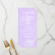 Modern purple lavender watercolor wedding dinner menu. Custom stylish, elegant and chic light pastel purple lavender watercolor brushstrokes background. Simple and artistic wedding theme perfect for spring and summer wedding theme.