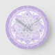 light purple snowflake & glittering heart round clock