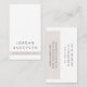 White and light rose grey colour block professional business cards or personal profile cards. Customisable name and title/company name on the front. On the back is a customisable template fields for your contact information.