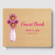 Pretty pink flowers, mason jar on a light wood background decorate this guestbook. Wedding guest books are fun for both the couple and their celebrants. Invite attendees to leave you well-wishes at your reception, and you're guaranteed to have a keepsake to look back on for years to come. Plus, your guests will get to leave their mark on your event, not to mention put in writing whatever they didn't have a chance to express in person on the big day. Personalise the book by changing the text in the fields provided. You can change font style, size, and colour.