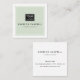 Elegant, professional business cards or personal profile cards with your custom logo, name and title/company name printed on the front on a light sage green background with a white border around the edge of the card. On the back are customisable template fields for your name, title/company name/speciality and contact information. A minimal and classy design for any industry