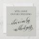 This design features the text "We'll Have Our Big Wedding" which is followed by "when we can hug our beloved guests" in a gorgeous, swirling script font. Use the template fields to add your personal details and change any of my draught wording to suit your needs and situation. If you haven't set a date yet, you can click to further customise and remove the unneeded lines. Feel free to change the background to any colour you prefer. If you'd rather have my help with customising, please do not hesitate to reach out. // 119 //