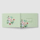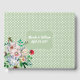 Pretty wedding guest book done in a light sage green with small white polka dots and a lovely painted bouquet of flowers, on the front and back. Personalise the custom text fields for your wedding day. Matching products are available.