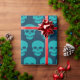Light Sea Green on Prussian Blue Skulls Wrapping Paper