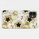 Seamless pattern of jewellery, gold and black stars on light textured background. Golden Star.