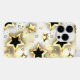 Seamless pattern of jewellery, gold and black stars on light textured background. Golden Star.