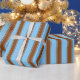 This wrapping paper design features a light sky blue and brown coloured striped pattern. Wrapping paper like this might be fun to use when wrapping gifts or presents being given in celebration of a birthday, a wedding, an anniversary, or some other event.