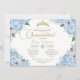 Light Sky Blue Rose Floral Gold Tiara Quinceanera Invitation